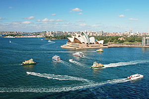 シドニーだけでなく、オーストラリアを象徴する建物オペラハウス。海沿いの遊歩道にはオープンテラスのレストランが並んでおり、テラスから眺めるオペラハウスも一興ですが、クルーズ船からオペラハウスの眺めも大変おすすめです。世界三大美港のひとつに数えられるシドニーハーバーからは様々なクルーズ船が出航しており、オペラハウスやハーバーブリッジなどの美しい景観を船上から楽しむことができます。