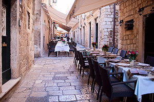 古いヨーロッパの雰囲気が残る街並み、長い歴史でピカピカに磨き上げられた石畳の路地、褐色に統一された美しい屋根など、この街の魅力が詰まっています。メインストリートである「プラツァ通り」の両サイドにはカフェや土産物屋が並んでいて、ゆっくりと見て回るのがおすすめです。見どころとしては、15世紀に造られた巨大な噴水「オノフリオの大噴水」や、美しい回廊とクロアチア最古の薬局のある「フランシスコ会修道院」があります。