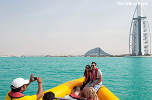 海からドバイを巡るツアーも数多く用意されています。「ザ・イエロー・ボート」はスピードボートを使用したツアーで、通常の観光用コースもありますが、よりスリリングな体験なら”スリルライド・コース”をお試しください。他にも水陸両用車で陸と海の両方を巡る「ワンダーバス・ツアーズ」や、伝統的な木造船(ダウ船)でアラビア湾までをクルーズするツアーもあります。