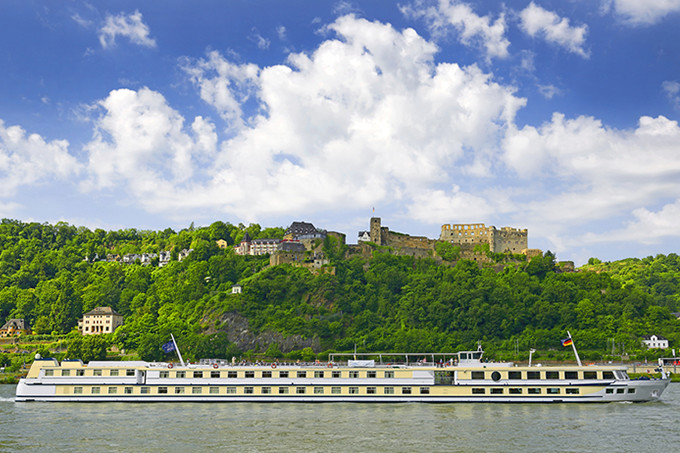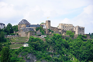 ライン川沿いに建つ古城ラインフェルスは、かつて実際にフランスとの戦争に使われた城。その大部分は破壊されてしまいましたが、17世紀に建て替えられた南側部分が現在ホテルとして利用されています。内部は当時の古い石材がそのまま用いられ歴史を感じるに十分。このホテルの魅力はなんと言ってもライン川を一望するロケーションにあり、特にレストランのテラス席は開放感が抜群で、宿泊者以外もわざわざ訪れるほど。