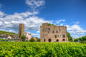 川沿いの街のひとつリューデスハイムには多くのワイナリーが集まり、極上の白ワインが味わえます。街は中世の雰囲気を残す家々が建ち並び、どこかかわいらしい雰囲気。ワイン酒場が集まる「つぐみ横丁」と呼ばれる通りはいつも多くの人で賑わいます。ワインを飲みながらドイツ料理に舌鼓を打ちましょう。またリューデスハイムには、ライン川クルーズの船着場もあり、ライン川クルーズのハイライトであるリューデスハイム~ザンクト・ゴアール間のクルーズにも便利です。