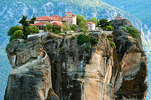 垂直にそそり立つ奇岩が立ち並ぶ険しい地形と、その奇岩の上に築かれた修道院が世にも珍しい景色を作り出しているのが、ギリシャの人気観光地の一つ「メテオラ」。「なぜこんな場所に?」というのがまず気になるところですが、俗世との関わりを断つキリスト教の修道士にとっては理想の環境だったのでしょう。現在でも現役の修道院では拝観が可能で、貴重なフレスコ画や美術品を見ることができます。