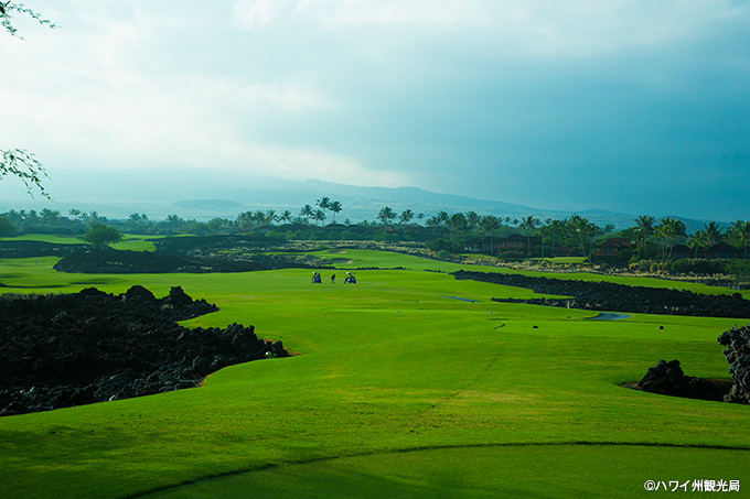 このゴルフコースはフォーシーズンズホテルに併設されており、ここに宿泊するゲストだけがプレー出来ます。よって混雑することはなく、ゆったりとプレーに集中出来ます。ジャックニクラウス氏設計で、フアラライ火山に向かってプレーするスタートホールに始まり、ハワイ島らしい溶岩ハザードから美しい海に面した最後の数ホールまで、コース環境が常に変化する中でのプレーが魅力です。雄大なハワイ島の海と山の景色を楽しむことができます。