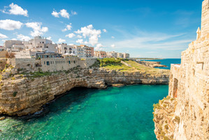 アドリア海に面した美しいリゾート地ポリニャーノ・ア・マーレにある絶景洞窟レストラン「グロッタ・パラツェーゼ(Grotta Palazzese)」で、忘れられないディナーをお約束します。
