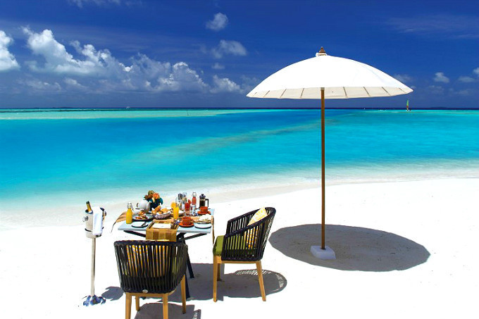 淡い金色の輝きを放ち、細かい泡の弾ける音がするシャンパンは、見ているだけでも幸せになれますよね。そんなシャンパンを朝食にいただくのが、南マーレ環礁のリゾート「オーゼン・バイ・アトモスフィア」の“シャンパン・ブレックファースト“。誰もいないビーチ、見渡す限りの海の景色と白砂のビーチはお二人だけのものです。