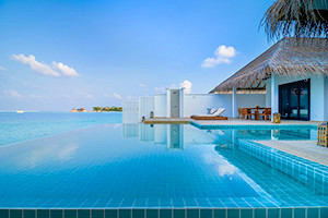 モルディブ滞在の起点であるマーレからもアクセスが容易な、南マーレ環礁のMaadhoo島に、2016年7月にオープンしたリゾート。このリゾートを象徴するのが、水深6mに位置するシーフード・レストランで、ぐるりと取り囲む水中世界はインパクト抜群です。もう一つの特徴が、充実の「オールインクルーシブ・プラン」。食事やドリンク以外にもスパ利用や各種アクティビティが揃い、滞在中に欲しい全てがプランに含まれているので、余計なことに気をまわさずゆったりと滞在を楽しむことができます。