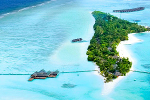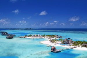 長い白砂のビーチと、透明度の高い遠浅のラグーンに囲まれたリゾート。モルディブのリゾートのなかでも類をみないほどの広大なラグーンは、場所によって深さが異なり、美しいブルーのグラデーションを作り出しています。また干潮時に姿を現すサンドバンク(砂州)の美しさも見事です。2016年には全面的にリニューアルし、より現代的で洗練されたリゾートに生まれ変わりました。コンセプトは「Lighter.Brighter」。滞在するだけで元気に明るくなりそうなリゾートです。