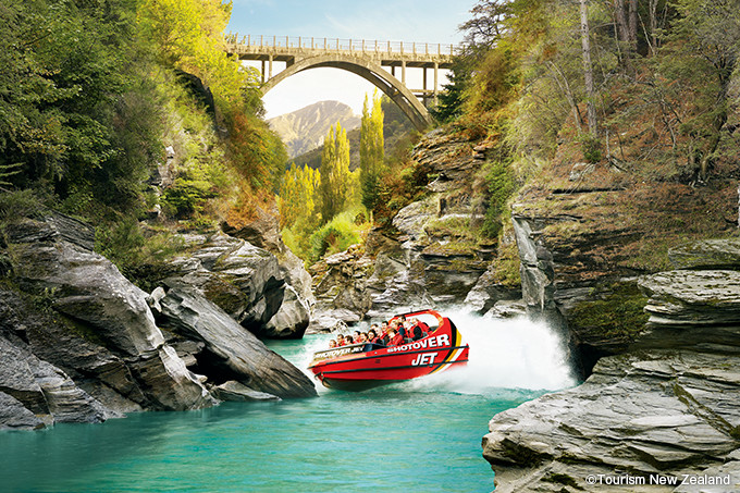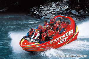 ニュージーランド発祥のアクティビティとしてもうひとつ有名なのがジェットボート。自然に囲まれた渓谷をゆっくりと下る・・・というイメージとはかけ離れていて、その余りの激しさに唖然とするはず。何しろ時速は80kmに達し、ドライバーは幅の狭い渓谷をわざわざ岩場ギリギリを選んで疾走していきます。そしてハイライトは360度スピン!約1時間の大興奮アクティビティです。