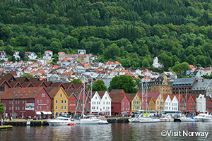 フィヨルド観光の拠点として知られるノルウェー第2の都市ベルゲン。港にあるブリッゲン地区は世界遺産にも登録されており、カラフルな木造家屋が並び、中世の繁栄を今に伝えています。ここから様々な交通機関を使って日帰りでフィヨルド観光が楽しめます。