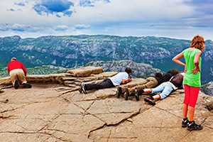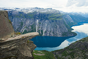 リーセフィヨルドの聖職者の教壇と言う意味をもつ「プレーケストーレン」が有名。海面から垂直に切り立つ絶壁は高さ604m。空に向かって突き出すような平らな岩場には、柵も何も設置されておらず、崖の端に腰掛ける強者も。見所は4大フィヨルド!世界遺産に登録されたソグネフィヨルドやガイランゲル、ハダンゲル、ノールが有名です。
