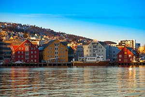ノルウェー北極圏最大の街にしてオーロラ観測の拠点となる街です。 街はトロムソイヤ島とトロムスダーレンに分かれ、この2つを約1kmのトロムソ橋が結んでいて、この橋が街の象徴ともなっています。木造の家が続く美しい街並を散策でき、レストランもたくさんあります。ポーラー博物館、トロムスダーレン教会は是非観光しておきたいスポットです。ノルウェーの沿岸を航行する観光船の寄港地にもなっており、クルーズの拠点としても人気があります。