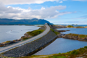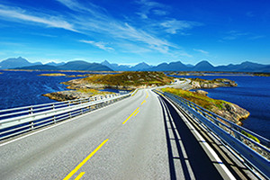 世界でもっとも美しい道路の1つとして、車のCMのロケ地としてもよく使われるノルウェーの「アトランティック・オーシャン・ロード」。海に浮かぶ小さな島々を橋で結んだ、左右上下になだらかにカーブするこの道路は、まさにノルウェーの大自然を満喫できる最高のスポットです。2006年にはイギリスのガーディアン紙で「世界最高のドライビングロード」にも選ばれていて、車好きの方は必見です!