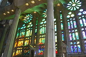 スペインが生んだ天才建築家「アントニ・ガウディ」が手掛けた事でも有名で、建築開始から100年以上が経った今でも、いまだ未完成という壮大な建物です。外観も素晴らしい建築物ですが、内部もまた教会とは思えないほどの独特の景観を作り出しています。何本もの白い柱が天井近くで樹木の枝のように別れ、さながら白い杉林の中にいるかのよう。ステンドグラスを通してこぼれる光もあいまって、とても幻想的な空間を体験できます。