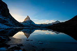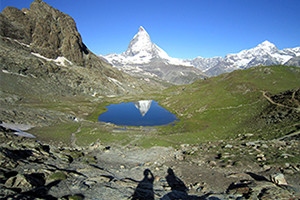 ツェルマットとゴルナーグラート展望台を結ぶ登山鉄道の途中駅”ローテンボーデン駅”から徒歩5分ほどで訪れることができる小さな湖です。この湖が人気なのは”逆さマッターホルン”が見えるため。写真を撮る時間や季節、角度の違いでマッターホルンの色々な表情がみられるのも人々を飽きさせない魅力になっています。澄み渡った青空の下での逆さマッターホルンも素敵ですが、特に朝焼け、夕焼けに染まる姿は感動ものです。