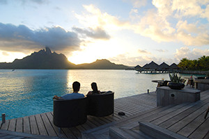 ボラボラ島は、本島を囲むように美しいラグーンが広がる地形をしています。中心に位置する本島の中心にはオテマヌ山があり、これこそが他の島とは異なるボラボラ島ならではの絶景を生み出しています。このような地形的な特徴の為、目の前に広がるラグーンとオテマヌ山の両方が見渡せるリゾートに人気が集まります。そして、宿泊するのはもちろん憧れの水上コテージ。水上コテージのテラスから眺める景色こそがボラボラでの最高の贅沢と言えるでしょう。