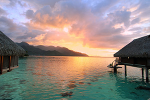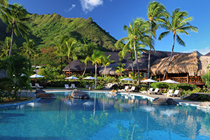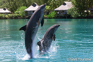 島全体が豊かな緑に覆われており、その一部、比較的なだらかになった島の北部にリゾートが集まっています。そのような自然豊かなモーレア島ですので、リゾートからは、美しいラグーンと切り立つような緑の峰の景色を楽しむことができます。代表的なリゾートの一つ、インターコンチネンタルリゾート&スパ・モーレアでは、イルカと触れ合える「ドルフィンエクスペリエンス」というアクティビティがあり、宿泊者でなくても参加可能でとても人気があります。