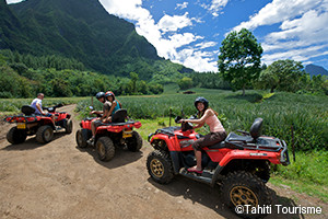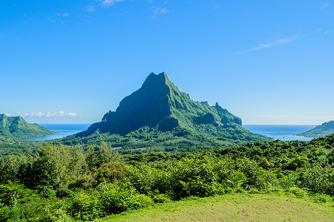 モーレア島観光で必ずと訪れる場所がこのベルベデール展望台。モーレア島の北側は、島に切れ込むような2つの湾がありますが、モーレアで一番のこの展望台からは、2つの美しいクック湾・オプノプ湾と、その間に立つロツイ山を一望する事ができ、絶好のパノラマスポットとなっています。展望台へは島の中の自然を駆け抜ける「4WDサファリ」でも行く事も可能。道すがら緑豊かなモーレア島の自然を存分に楽しむこともできます。