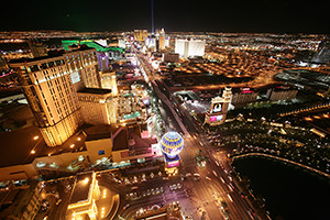 ラスベガスのメインストリート。数々の巨大ホテルがこの通り沿いに建ち並び、昼は車や人でにぎわい、夜には数キロメートルに渡ってネオンがきらめく、まさに眠らない街ラスベガスの象徴というべき豪華なストリートです。パリをモチーフにエッフェル塔が建つ「パリス」や、ベネチアを模したホテル「ベネチアン」、エジプトのピラミッドやスフィンクスが建つ「ルクソール」など様々で、このようなテーマホテルを順番に観光することをラスベガスではホテルホッピングと呼びます。