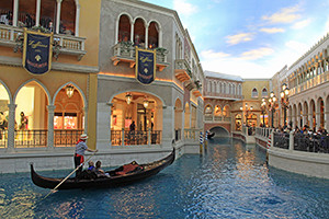 高級ブランドからカジュアルまで何でもそろう大型ショッピングモール「フォーラムショップス」や、プラネットハリウッドに併設されている「ミラクルマイルショップス」はいずれも店舗数が150以上あり、ウィンドショッピングも楽しい。また店舗数は約60と比較的少なめですが、ホテル・ベネチアンに併設されている「ザ・グランドキャナルショップス」はイタリアのベネチアを模した造りで、ベネチアの街の雰囲気を感じながらショッピングを楽しむことができます。